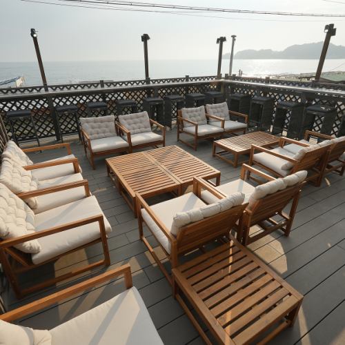 開放的なテラスはオーシャンビュー!ご友人やお仲間との楽しい時間や女子会に人気のお席です。爽やかな風を浴びながらのBBQはまさに格別!7月の鎌倉花火大会も花火を目の前で観覧いただける当店自慢の特等席!!日頃の疲れを吹き飛ばす非日常のひとときをお楽しみください♪