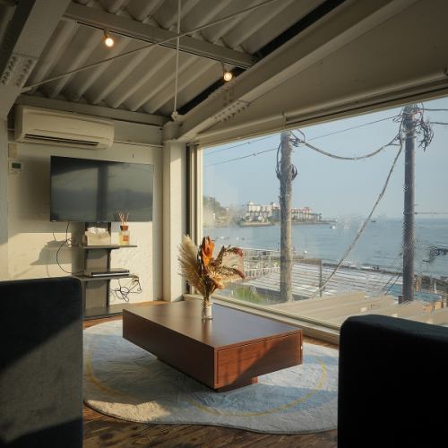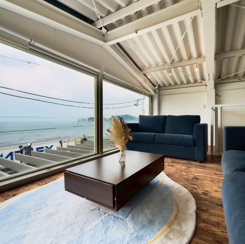 室内に居ながら海を臨めるお席もご用意しております。まるで別荘のような雰囲気の中、ドリンク片手に過ごす時間は癒しのひととき。ペット連れのお客様も大歓迎なので、季節を問わず海辺でごゆっくり過ごすなら『鎌倉幕風』へお越しください!